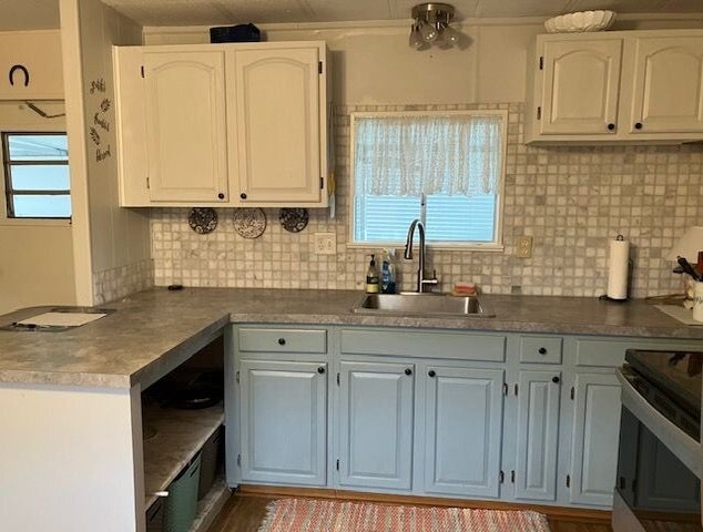 Very nice partially furnished single wide with screened carpeted lanai and large carport. Large island kitchen in front, with stainless steel appliances including microwave over the range. Table and chairs are also included. All appliances remain with home. Refrigerator is one year old, and washer is 6 months old. Wood laminate flooring throughout. Tile in kitchen and bath. Queen size master bedroom furniture will remain with home, also sofa and loveseat. There is a utility shed which contains washer, dryer and water heater. There is also a large storage shed. The home is located in the cul-de-sac on Dakota Oaks Drive. MUST SEE!!!!